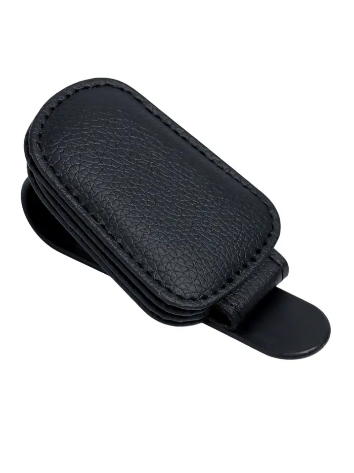 Держатель для очков автомобильный, кожаный, черный