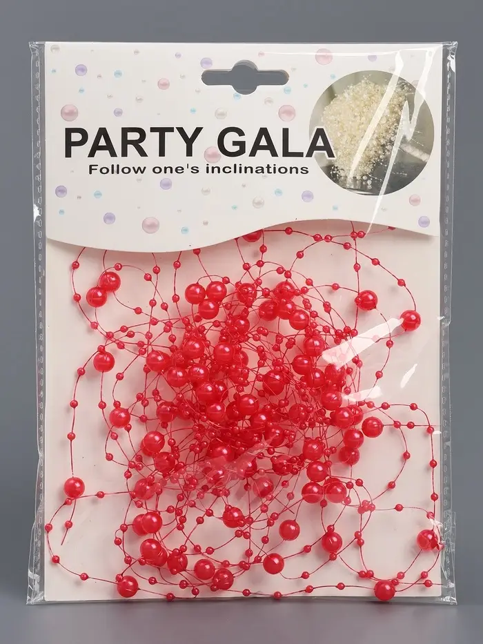 Гирлянда для декора из бусин, красная