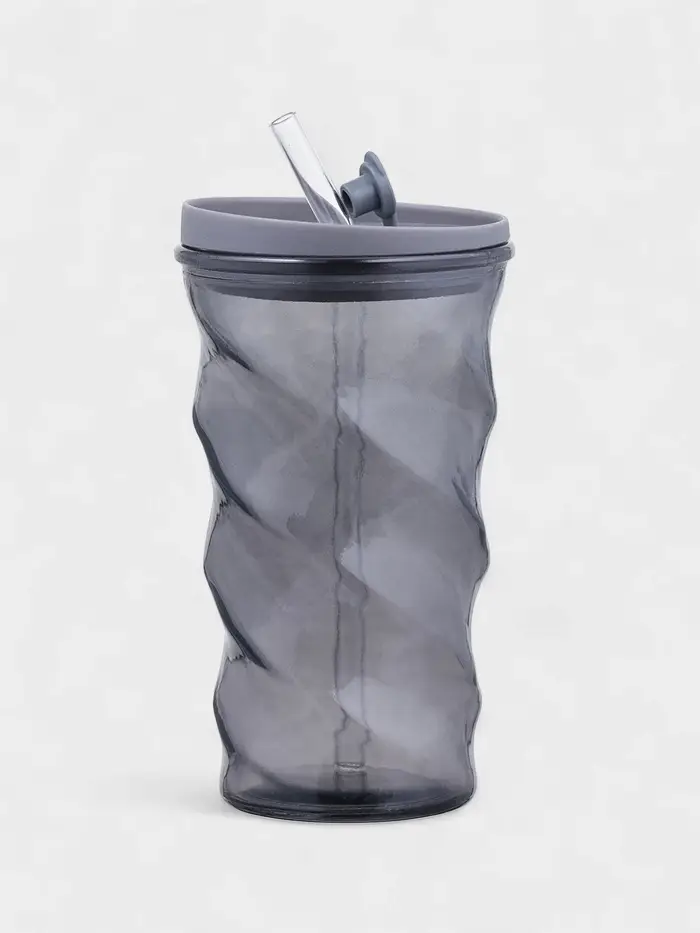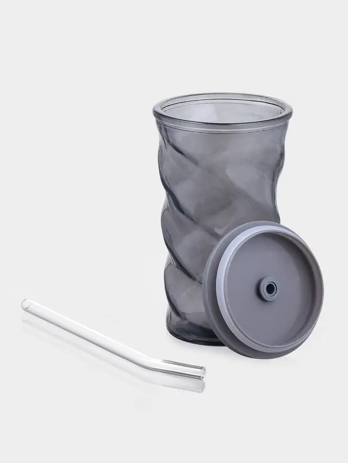 Стакан с трубочкой "Вихрь" 500 мл, 8х8х16 см, силиконовая крышка, черный