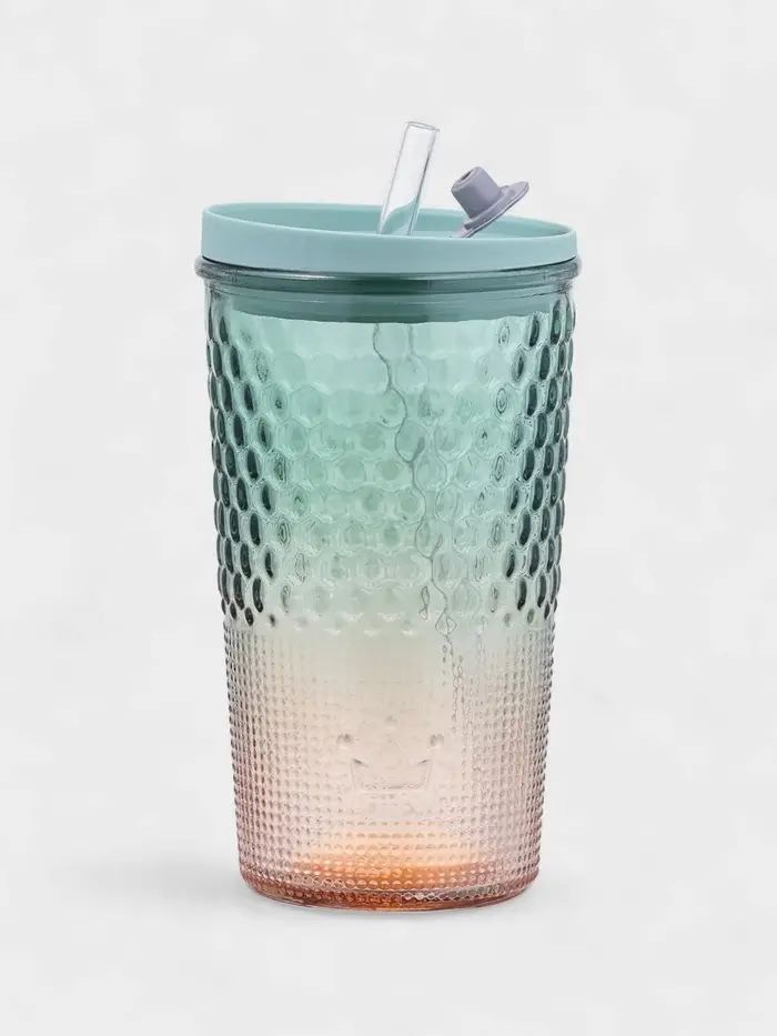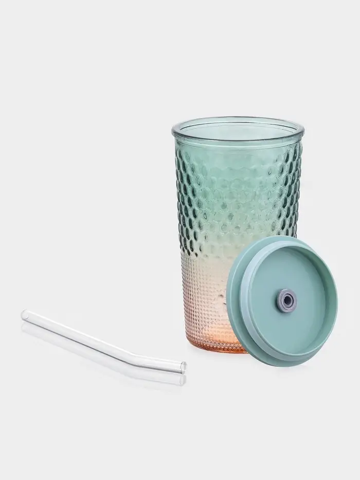 Стакан с трубочкой "Спектр" 500 мл, 8х8х16 см, силиконовая крышка, зеленый