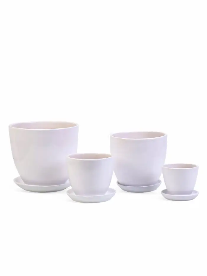Набор горшков цветочный поддоном 4 шт 0,4 / 1 / 2,5 / 5 л керамика, Белый