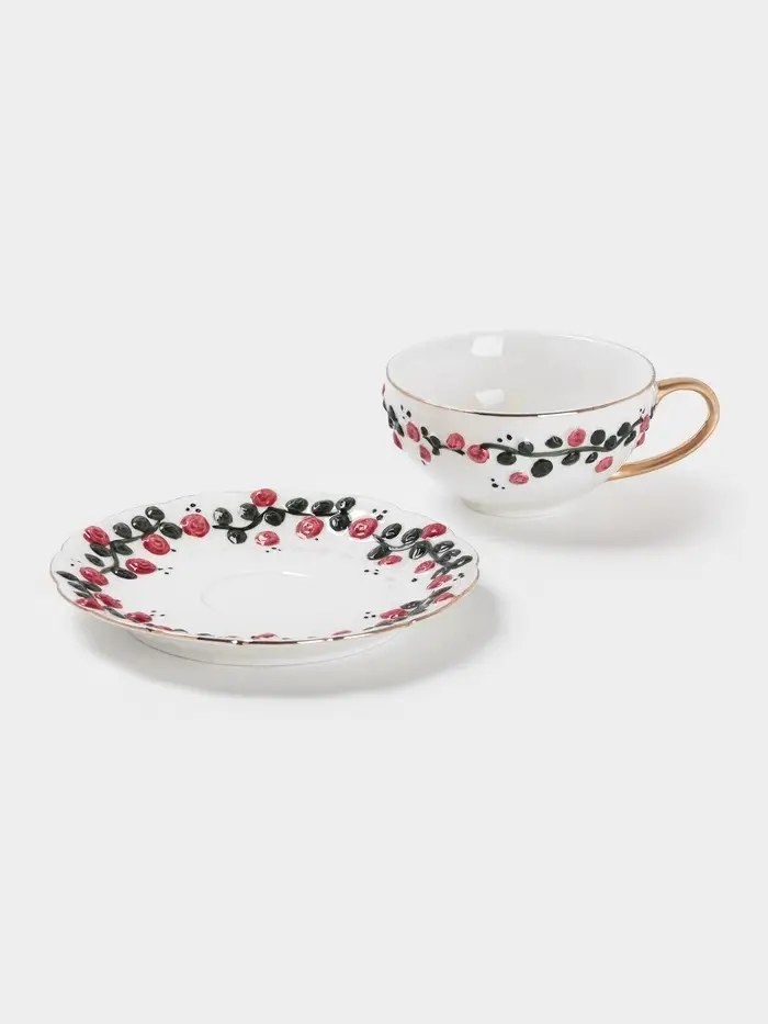 Начните свое утро с изящной чайной пары «Цветочный Лепесток». Этот утонченный набор, состоящий из чашки и блюдца, подарит вам минуты наслаждения и спокойствия, превращая обычное чаепитие в настоящий ритуал.