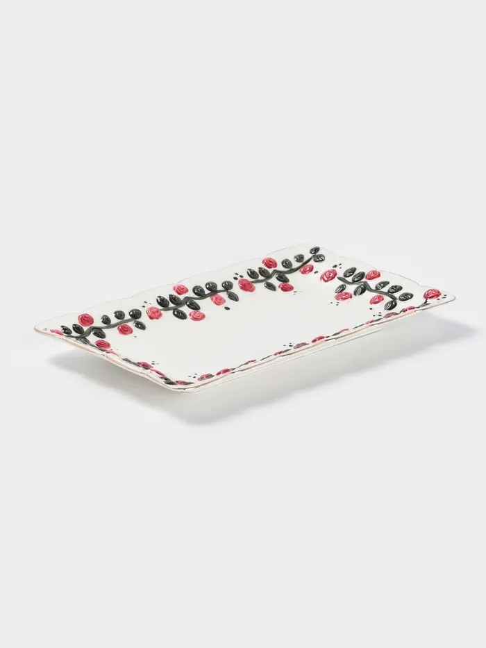 Блюдо сервировочное «Красный бутон», 25.5×16×2.5 см, керамика, белое