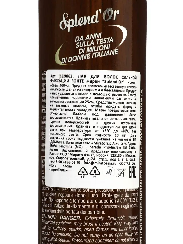 SPLENDOR Лак для волос сильной фиксации FORTE 400 мл