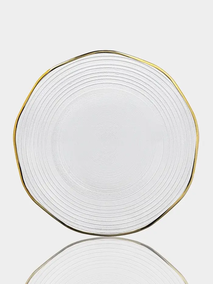 Тарелка обеденная "Свита" 27х2,5 см, золотой обод, прозрачная
