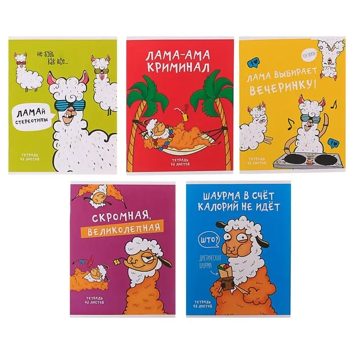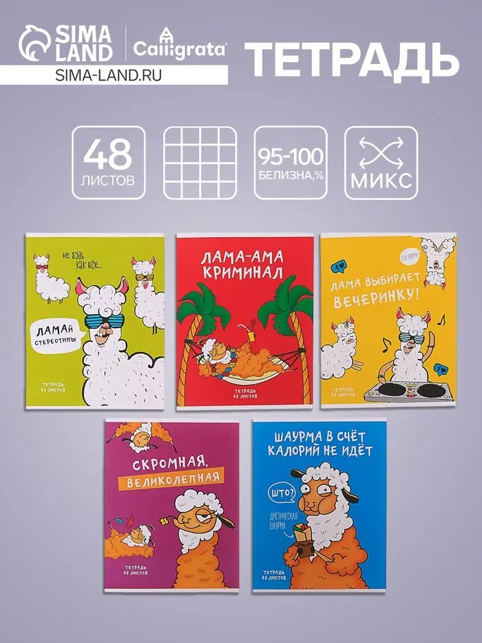 Тетрадь 48 листов в клетку Calligrata «Лама», обложка мелованный картон, МИКС