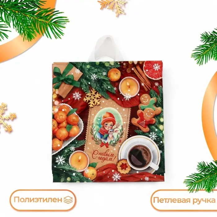 Новогодний полиэтиленовый пакет с петлевой ручкой — это идеальное решение для упаковки праздничных подарков.