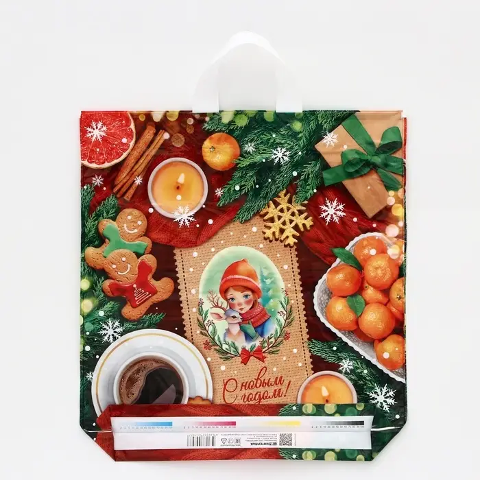 - Яркий праздничный дизайн подчеркивает новогоднюю атмосферу, делая этот пакет отличным вариантом для подарков, сувениров и покупок в преддверии праздников.