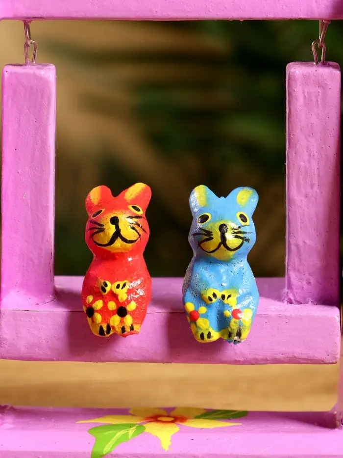 Сувенир «Зайки на качелях», 11×5.4×14.4 см, дерево, сиреневый