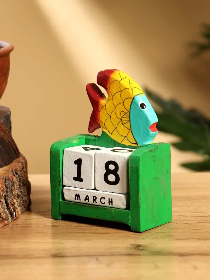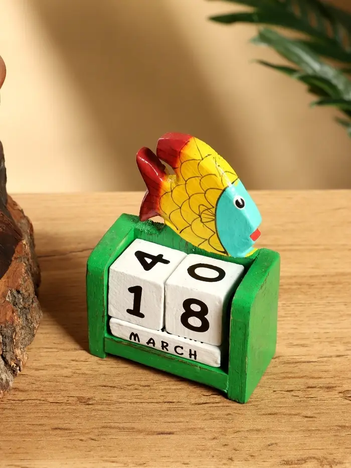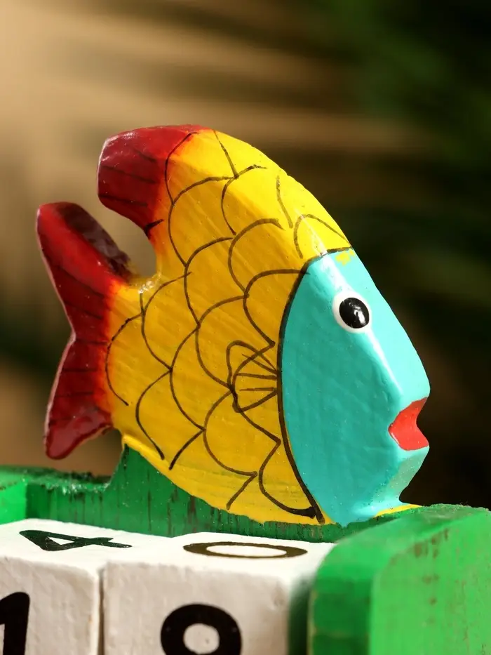 Календарь настольный "Рыбка" дерево 7х4х9 см, цв. зелёный
