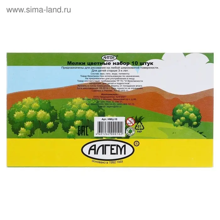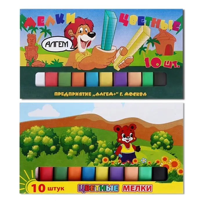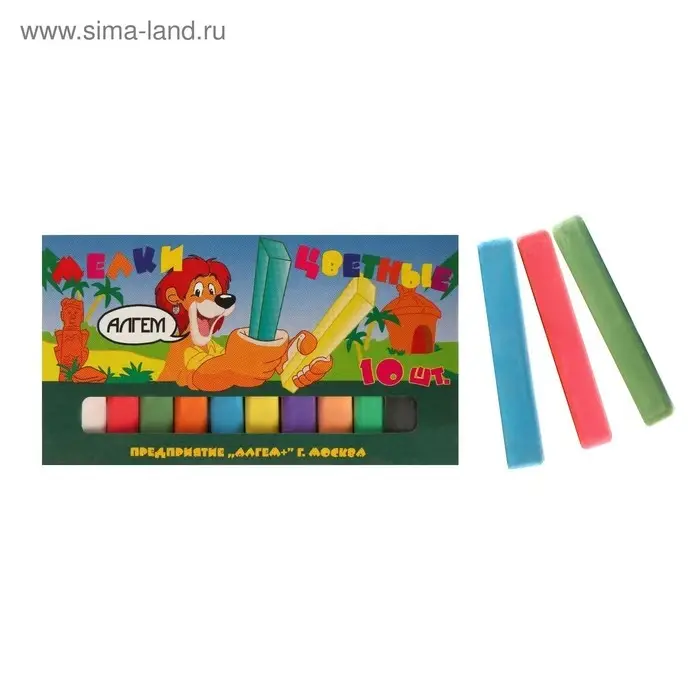 Мелки цветные «АЛГЕМ», в наборе 10 штук, квадратные