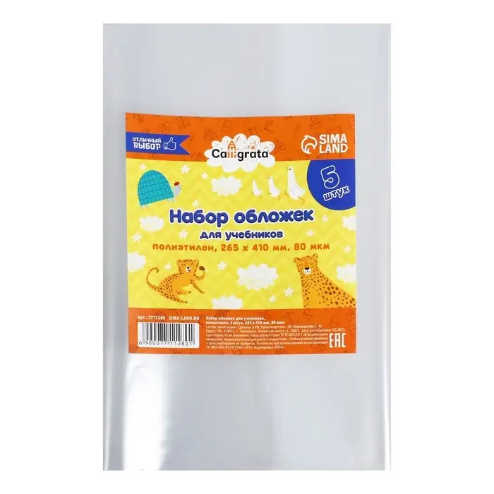 Набор обложек ПЭ 5 штук, 265 х 410 мм, 80 мкм, для учебника Петерсон