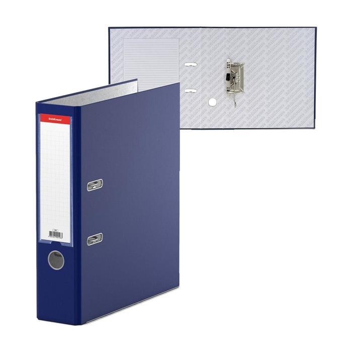 Папка-регистратор А4, 70 мм, "Бизнес", собранная, синяя, пластиковый карман, металлический кант, картон 2 мм, вместимость 450 листов