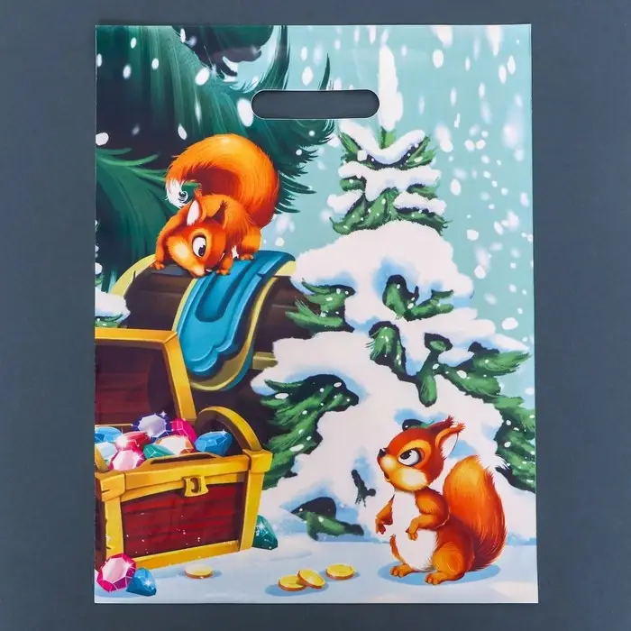 Пакет "Бельчата", глянец полиэтиленовый с вырубной ручкой, 30,5х40 см, 60 мкм