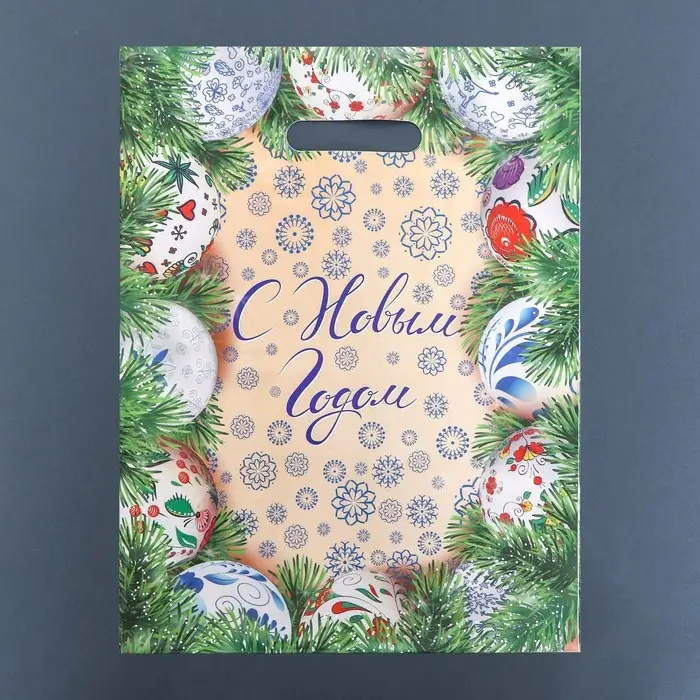 Пакет "Новогодняя роспись", глянец полиэтиленовый с вырубной ручкой, 31х40 см.