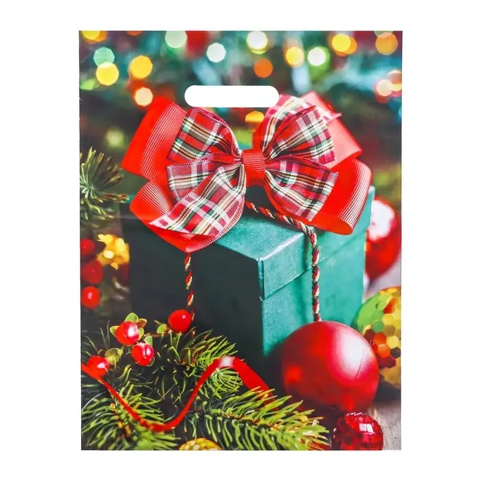 Пакет "Зеленый подарок", глянец полиэтиленовый с вырубной ручкой, 31х40 см, 60 мкм