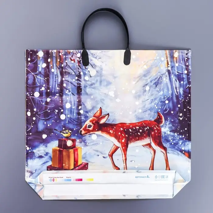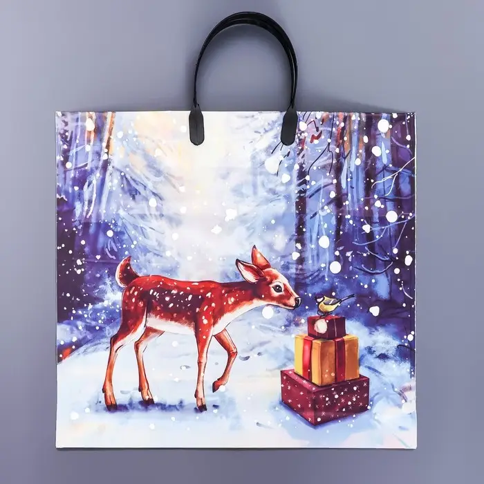 Пакет "Новогодняя тропа", полиэтиленовый с пластиковой ручкой, 37 х 33 см, 90 мкм
