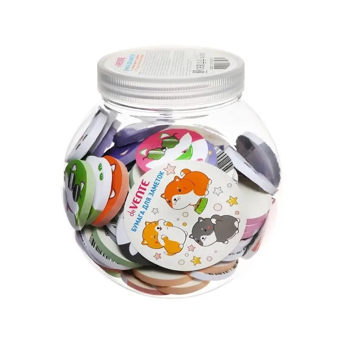 Клейкая бумага для заметок "deVENTE. Shiba" 45x45 мм, 50 листов, офсет 80 г/м², печать 4+0, 6 дизайнов, в пластиковой банке