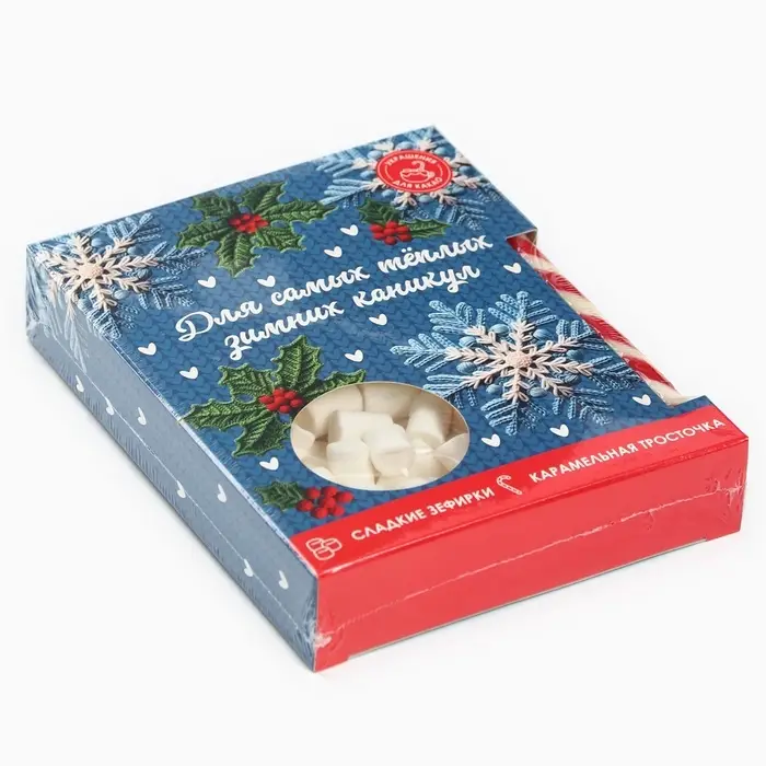 Подарочный набор новогодний «Для тёплых каникул»: маршмеллоу, вкус: пломбир 50 г., леденец, вкус: клубника, 15 г.