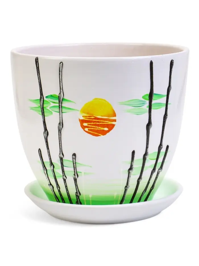Горшок цветочный поддоном 5 л, керамика, Азия (М)