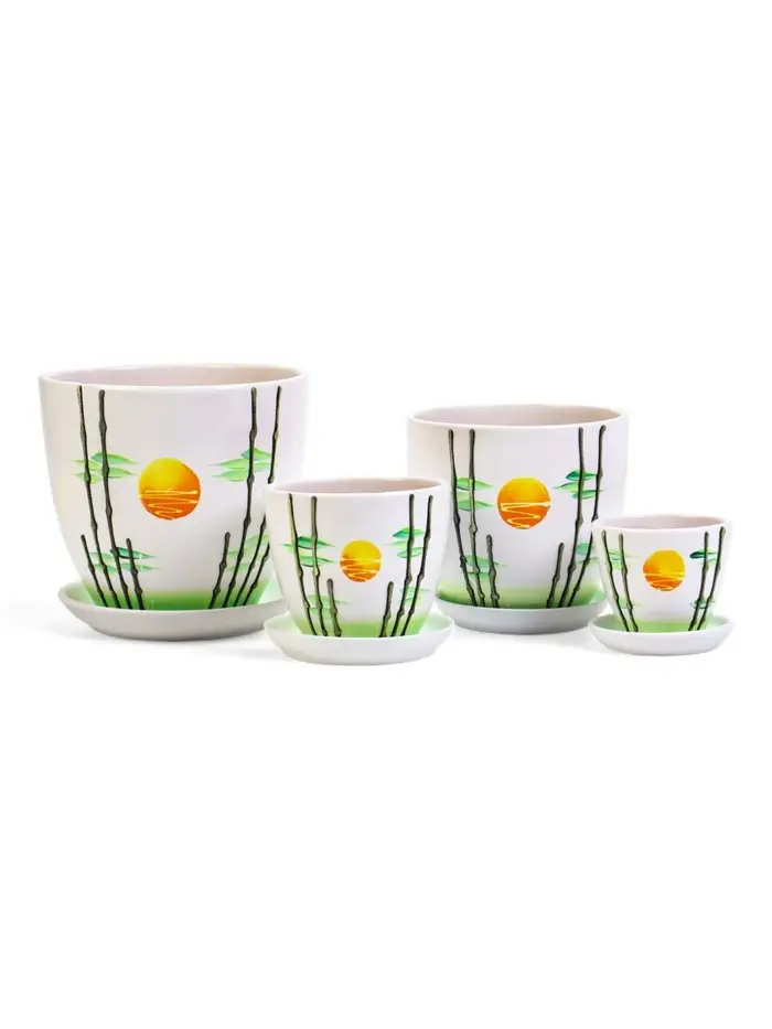 Набор горшков цветочный поддоном 4 шт 0,4 / 1 / 2,5 / 5 л керамика, Азия