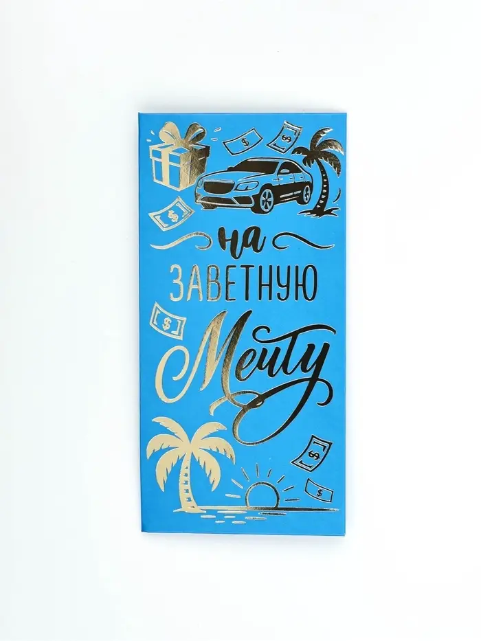 Конверт для денег "Заветная мечта", тиснение, 16,5 х 8 см