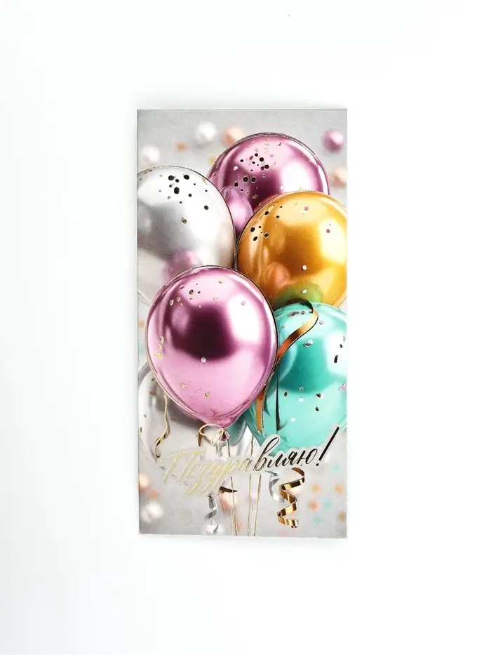 Конверт для денег "Поздравляем!", шары, тиснение, 16,5 х 8 см