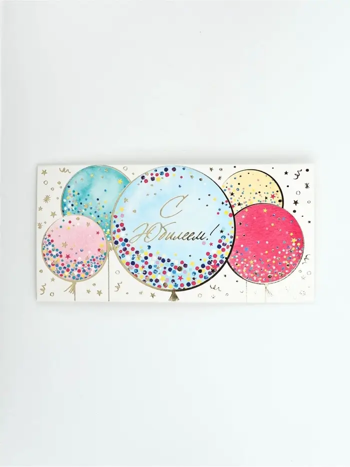 Конверт для денег "С Юбилеем!", шары, тиснение, 16,5 х 8 см