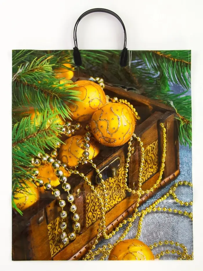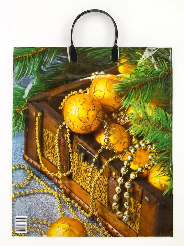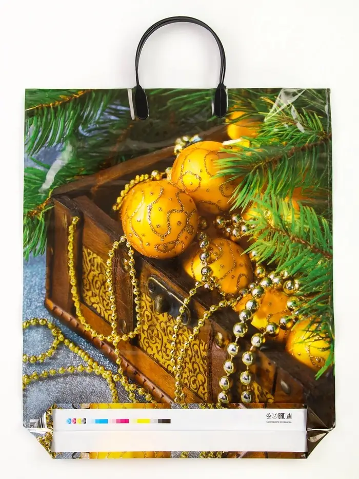 Пакет "Новогодние сокровища", полиэтиленовый с пластиковой ручкой, 38х45 см, 90 мкм