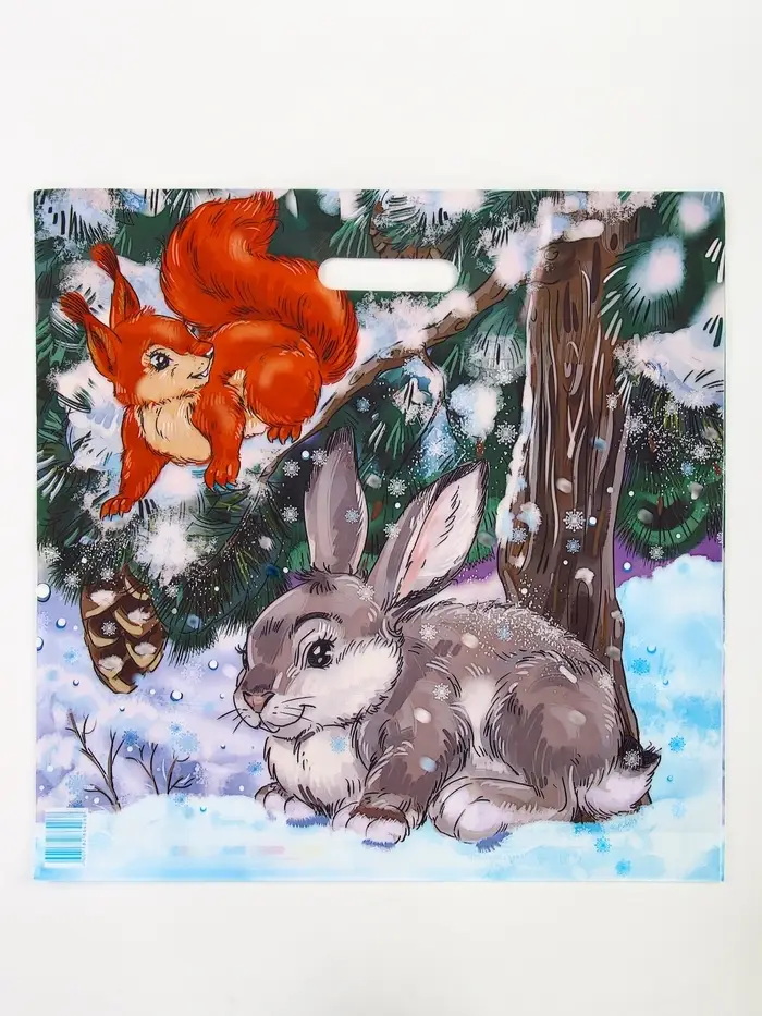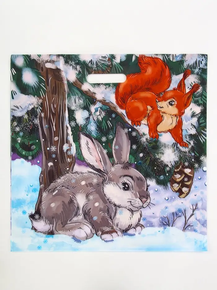 Пакет "Зимовье", полиэтиленовый с вырубной ручкой, 38х45 см, 50 мкм