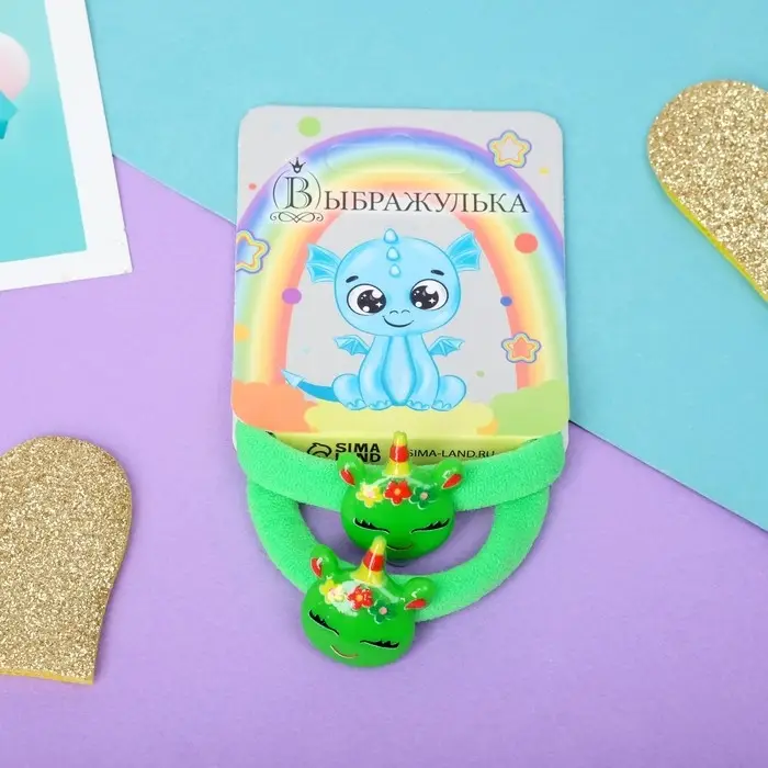 Резинка для волос "Маленькая радость" (набор 2 шт) единорожек цветочки, 4 см, зелёный