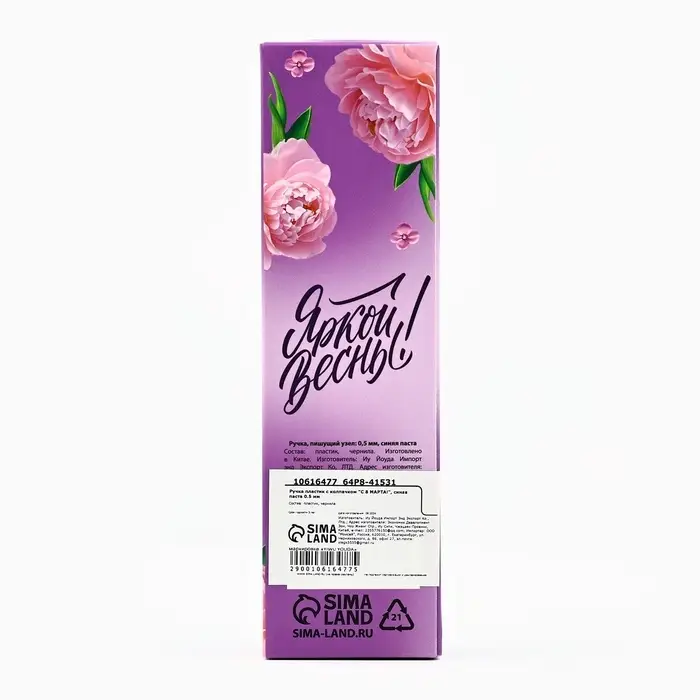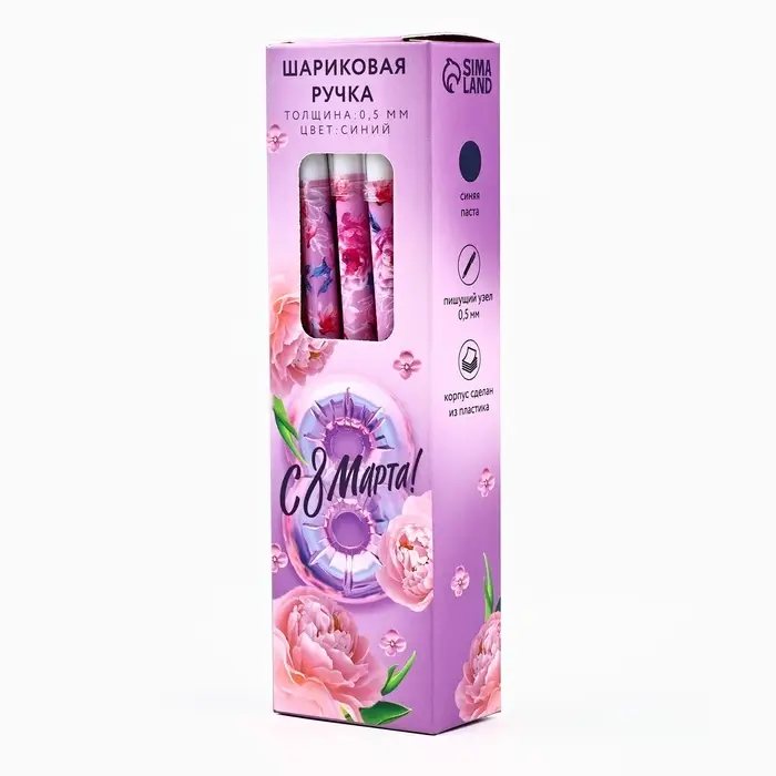 Ручка шариковая, пластик с колпачком «С 8 МАРТА!», синяя паста 0.5 мм