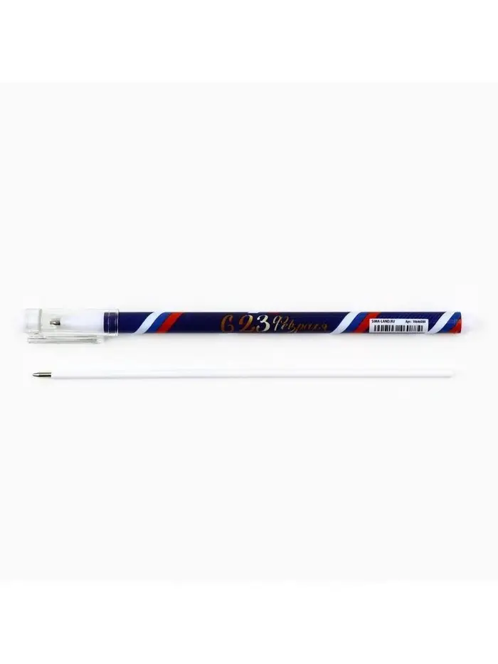 Ручка пластик с колпачком "С 23 Февраля", синяя паста, шариковая 0,5 мм