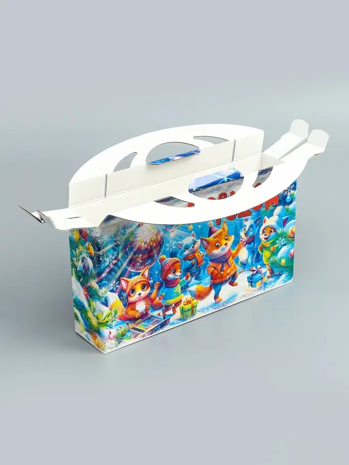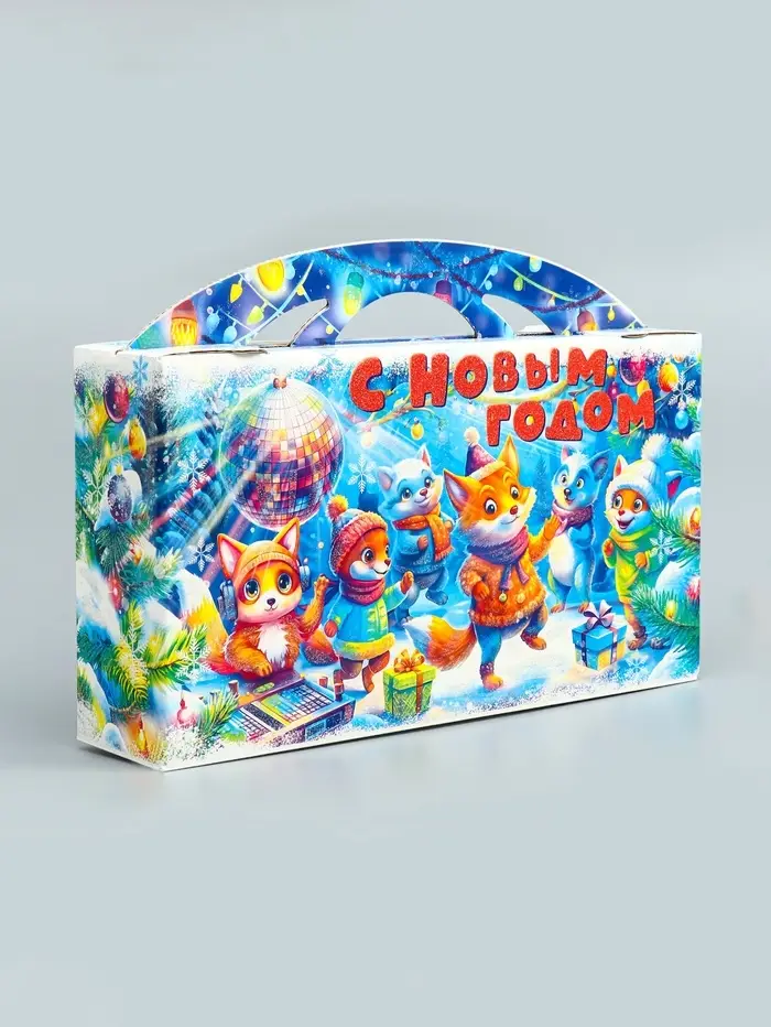 Подарочная новогодняя коробка «Лесное диско» , Портфель макси широкий, 37×8×20.2 см