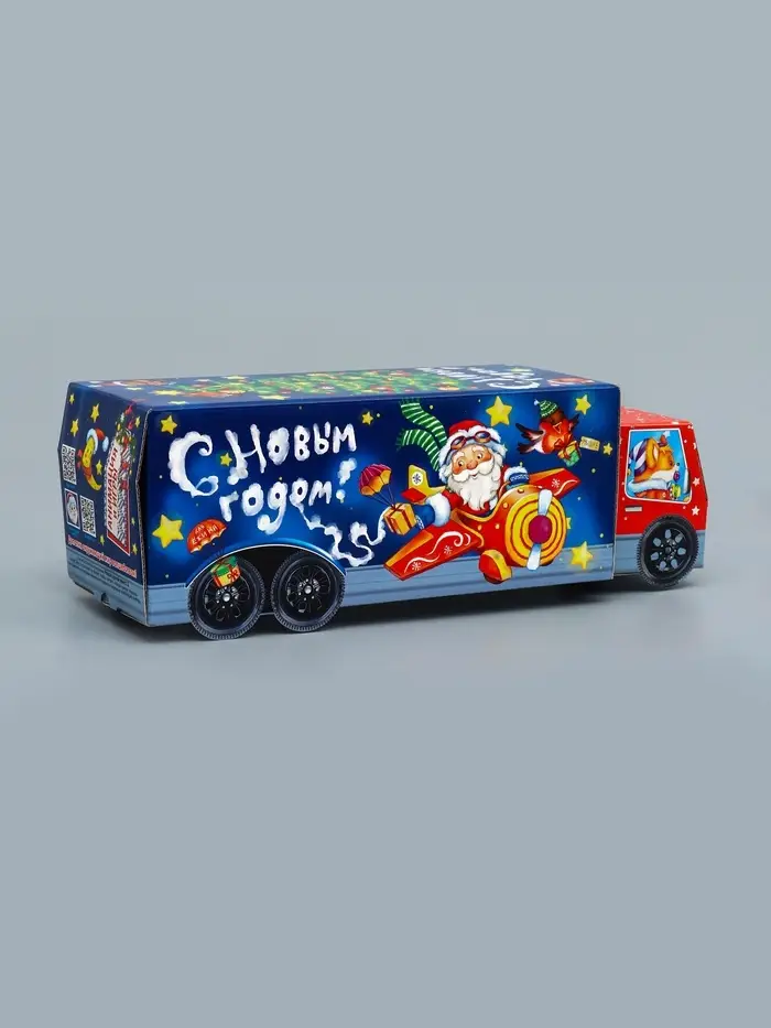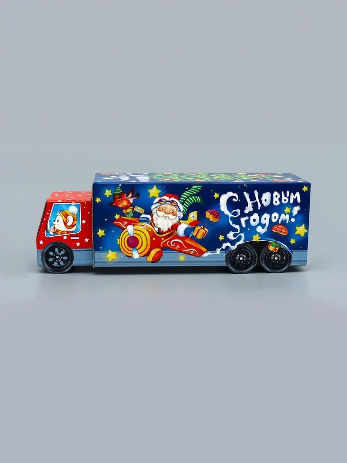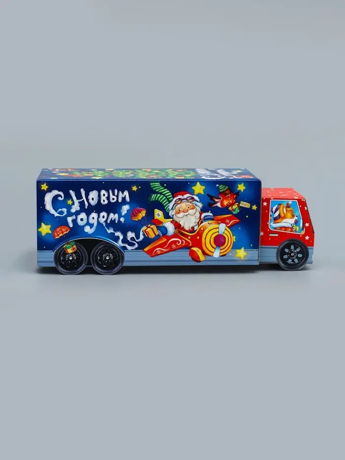 Подарочная коробка Новогодняя Фура «Новогодний пилотаж» с анимацией 36×15×10 см