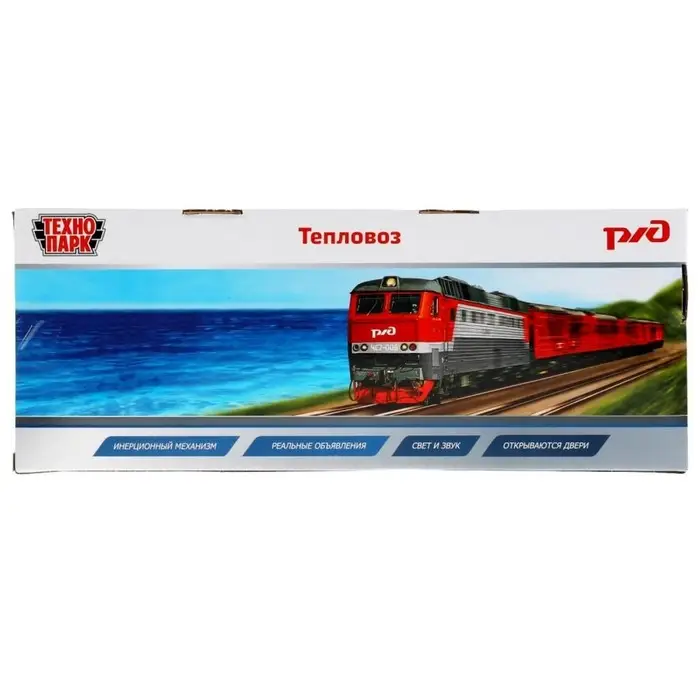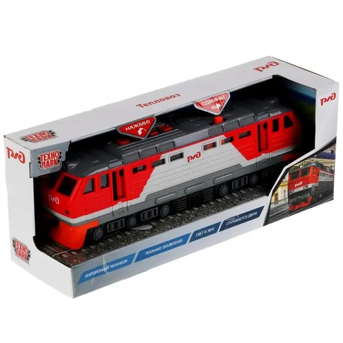 Модель «Тепловоз РЖД», 30 см, световые и звуковые эффекты, двери, 4 кнопки, инерция