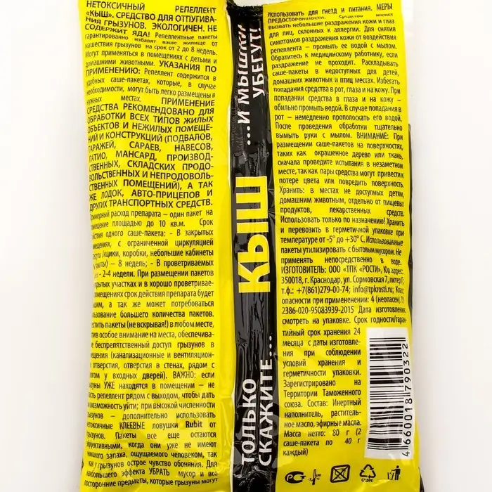 Репеллентные пакеты гарантированно избавят ваше жилище от нашествия грызунов на срок от 2 до 8 недель. Могут применяться в помещениях с детьми и домашними животными.