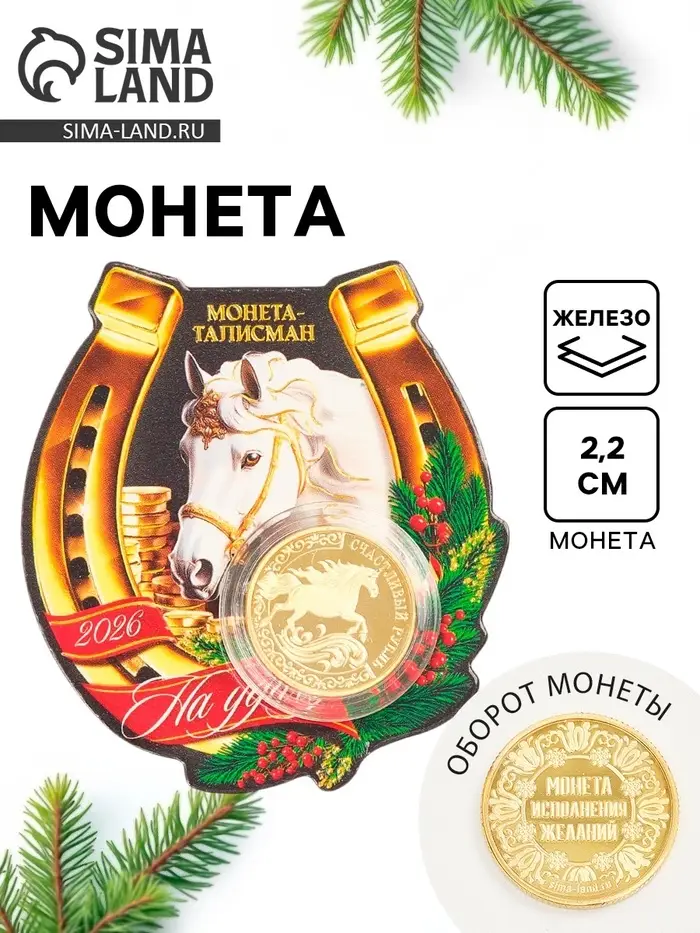 Монета новогодняя сувенирная «Талисман на удачу», диам. 2,2 см