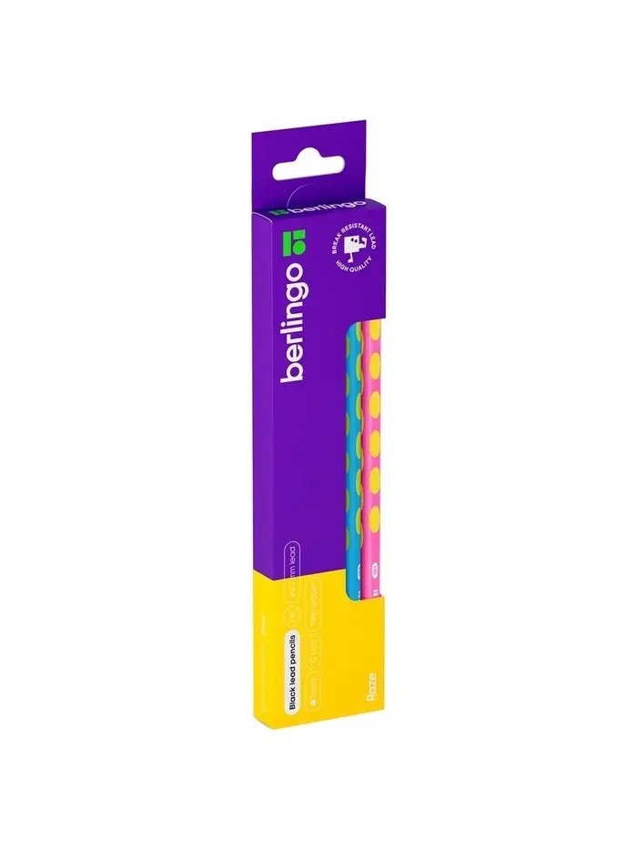 Карандаш ч/г Berlingo "Raze" HB, с ластиком, заточен, пластик, трехгр, выемки, ассорти