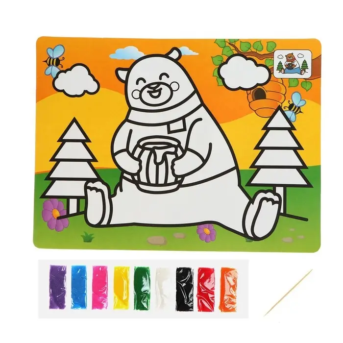 Фреска с цветным основанием «Мишка» 9 цветов песка по 2 г