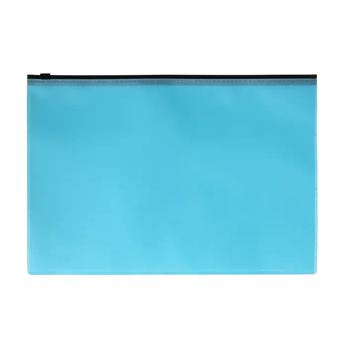 Папка-конверт на ZIP-молнии A4, 180 мкм, Calligrata Pastel, полупрозрачная, чёрная молния, голубая