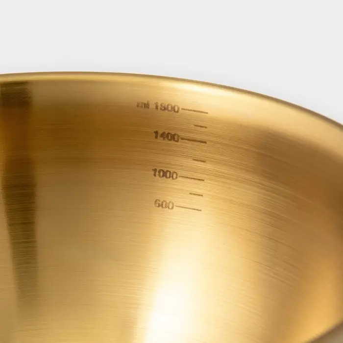Этот стильный и практичный набор из четырех мисок из нержавеющей стали станет незаменимым помощником как для ежедневного использования, так и для праздничных застолий. Золотистый цвет добавит роскоши вашей сервировке, а мерная шкала – безупречной точности в приготовлении.