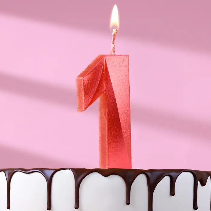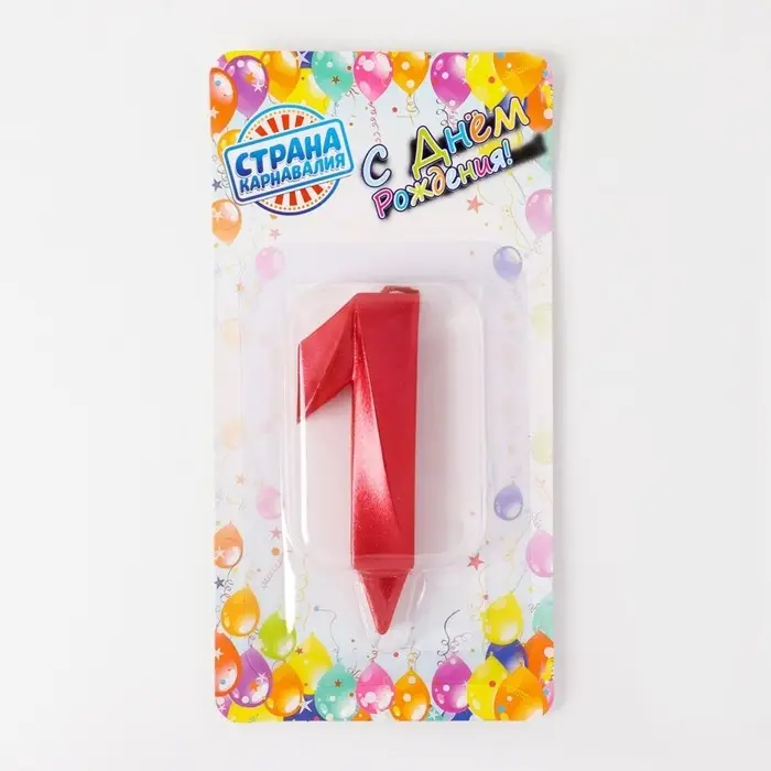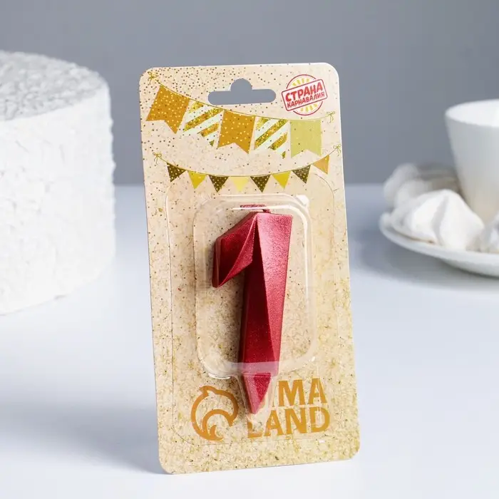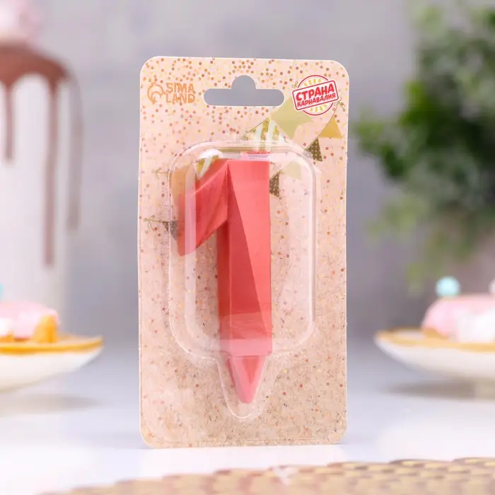 Свеча в торт «Грань», цифра 1, красный металлик, 6.5 см