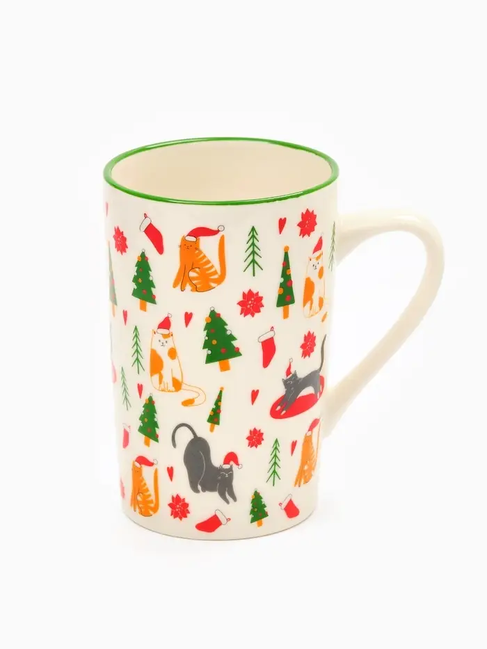 Кружка чайная керамическая «Новогодние коты», 385 мл, ручная работа