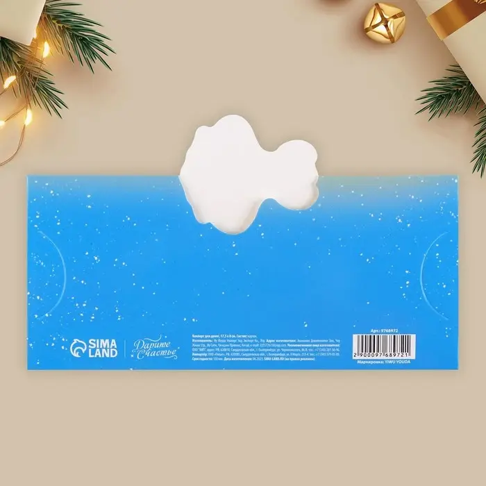 Конверт для денег фигурный «Новый год: Дед Мороз», 17.5 х 8 см