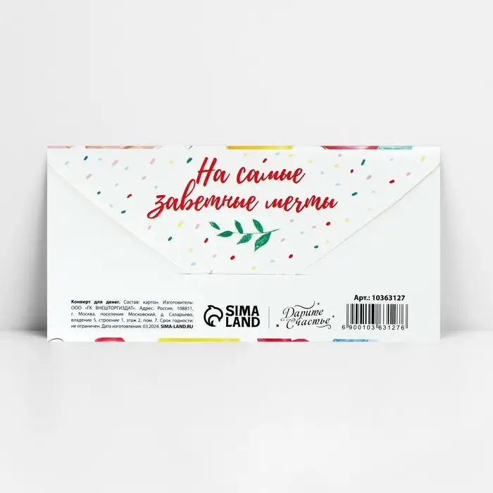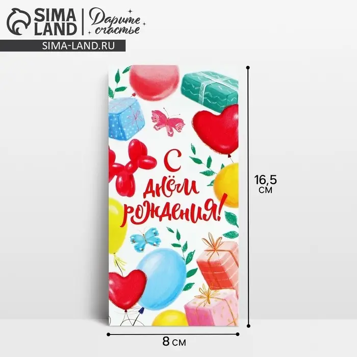Конверт для денег «С Днём рождения!», на мечту, 16.5 х 8 см