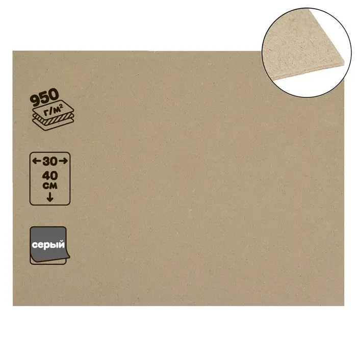 Картон переплётный (обложечный) 1.5 мм, 30 х 40 см, 950 г/м2, серый