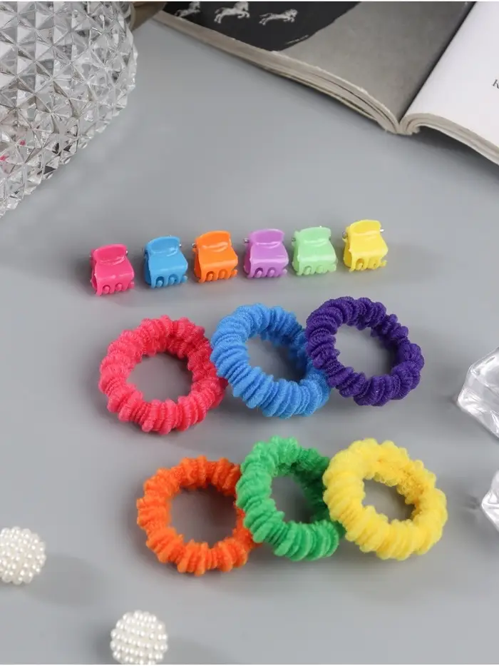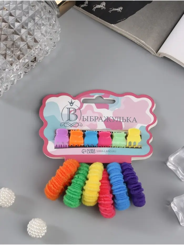 Набор для волос «Махрушка»: 6 резинок, 6 крабов, ребристая радуга, МИКС