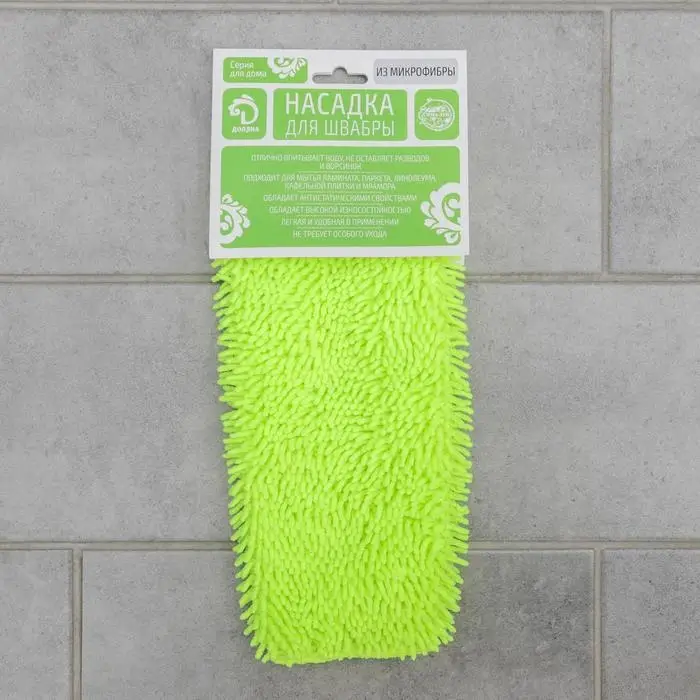 Насадка из микрофибры отлично подходит для мытья всех видов напольных покрытий: линолеума, ламината, паркета, кафельной плитки, мрамора. Она не царапает поверхность и отлично впитывает воду.