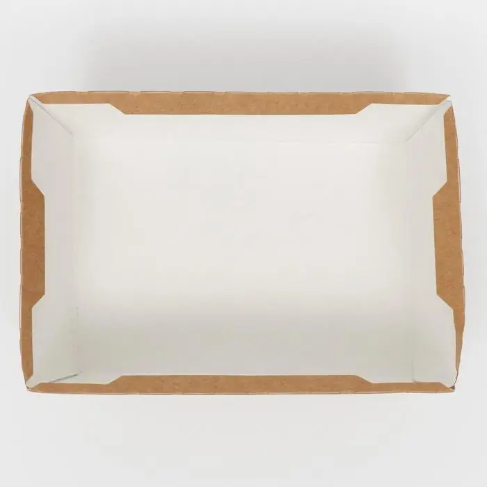 Натуральный материал из переработанной древесной массы. Выделяется легкостью, плотностью, экологичностью. Имеет ламинированный внутренний слой. Хранится в сухих вентилируемых помещениях. Оформление привлекает внимание, сочетается с другими упаковками для фаст фуда из этой же серии. Утилизируется после эксплуатации.